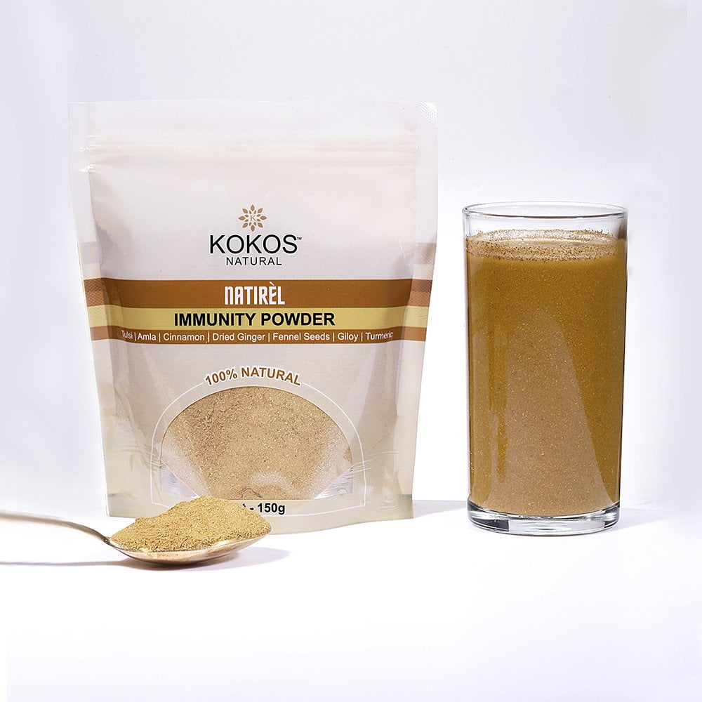 House of Tyche presents Kokos high nutrition daily supplement made of 100% organic mix of tulsi, cinnamon, saunf, haldi, dried ginger, giloy and amla (Indian gooseberry). It reduces fatigue and boosts your stamina. It is a powerhouse of easily digestible protein – contains as high as 65% of protein mass in every spoon. It’s rich in iron and improves your hemoglobin levels. It helps build immunity. Add 1 tsp powder in a large glass of water and have it in the mornings/evenings. Sprinkle on salads, mix in curries, soups or in the atta of your chapatis/paranthas.