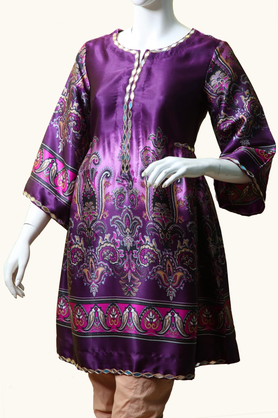 Silk Short Kurti with Mirror Work