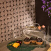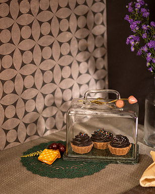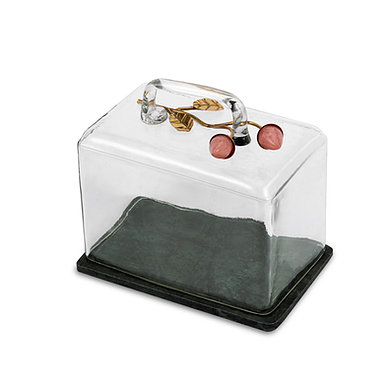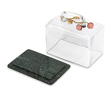 The Rosebud cake dome is the perfect choice when your delicacies are too exceptional for sitting in a tin. The low gleaming glass dome sits on a raw marble base. The natural marble has been chosen due to its exquisite markings and shades, which will vary from piece to piece making each cake dome unique in appearance .